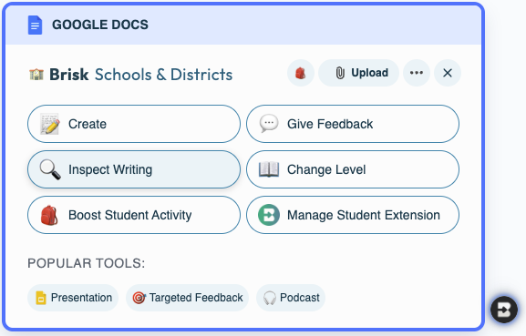 Click on the Brisk Extension and choose 🔍 Inspect Writing
