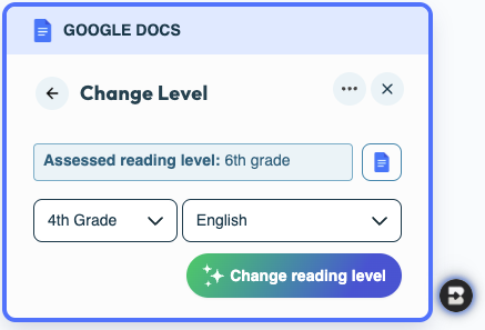 Use the Change Level tool to adjust text reading levels instantly. Brisk will analyze and rewrite the copy from a document or webpage.