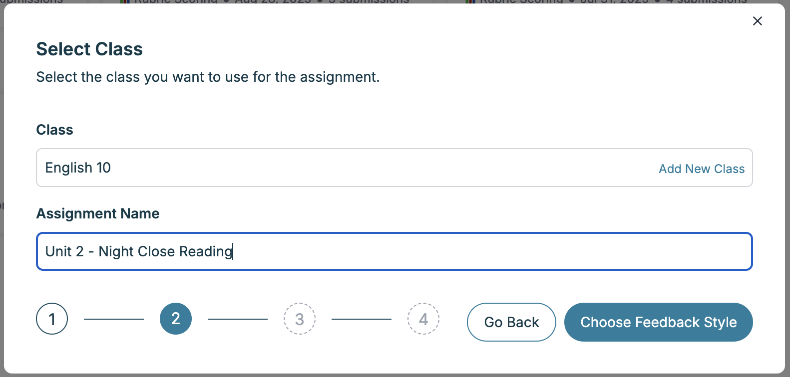 Select a class or add a new class, and give your assignment a name. Then click Choose Feedback Style.