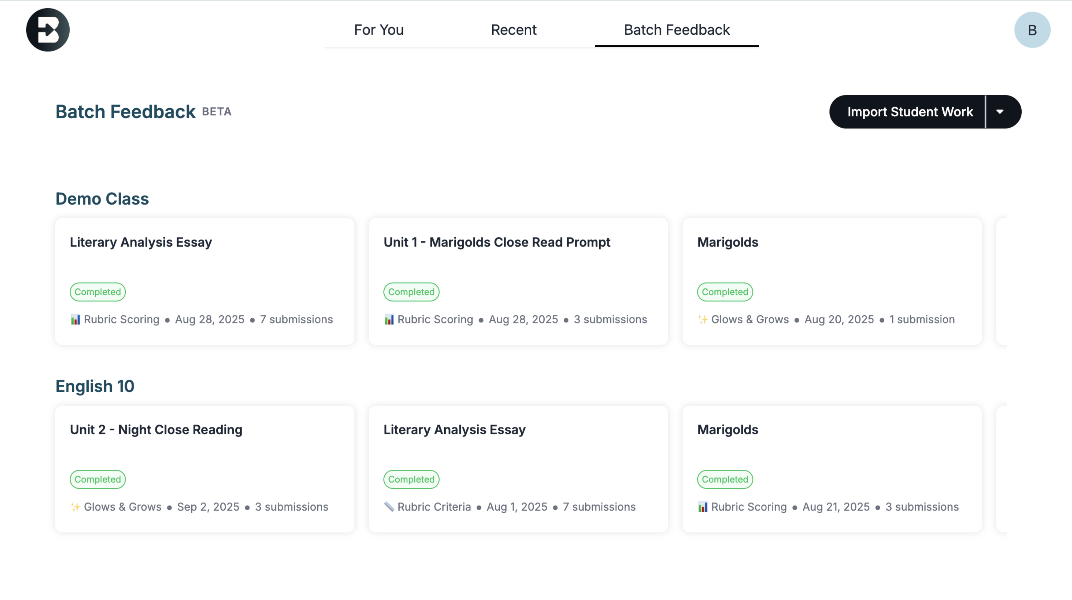 Please note that Batch Feedback is still in Beta! That means that you may notice changes frequently as we improve and expand the feature, and occasionally you may encounter a bug. We will do our best to keep this document up to date as changes are made.