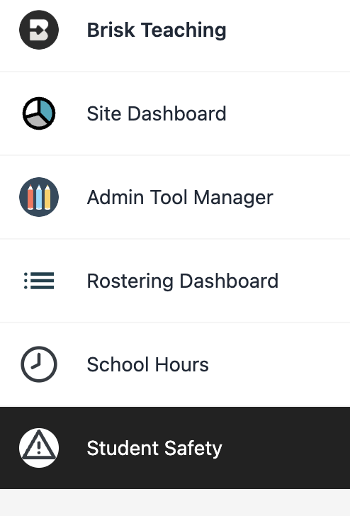 Administrators can access Student Safety settings from the Administrator Portal. If you do not have access to the Administrator Portal, reach out to your Customer Success Manager or hello@briskteaching.com for further support.